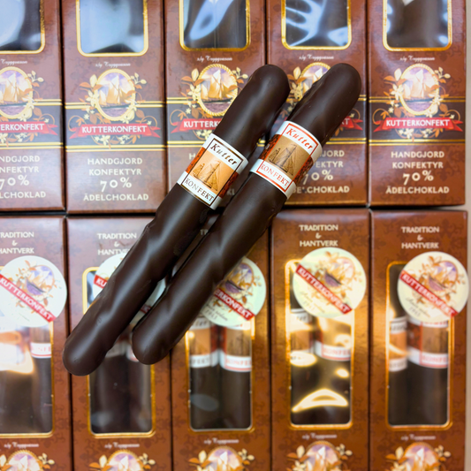 Välkommen till vår kollektion av marsipancigarrer – en lyxig och smakrik konfektyr från Kutterkonfekt. Våra marsipancigarrer är omsorgsfullt handgjorda med hög mandelhalt, smaksatta med naturliga ingredienser och doppade i fin mörk choklad (70 %).