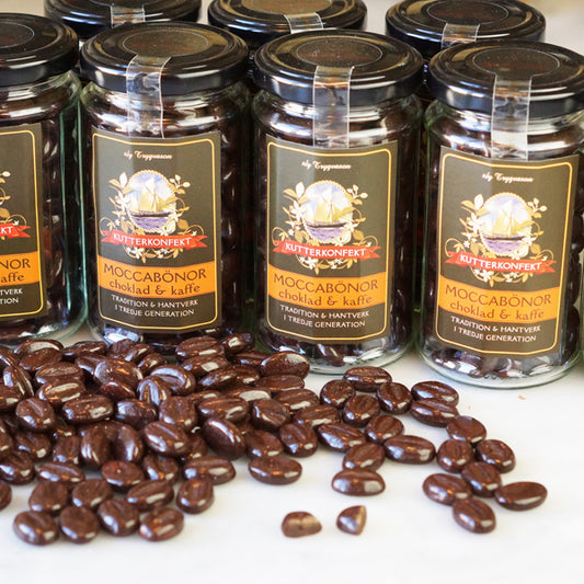 Moccabönor: För kaffeälskare erbjuder vi utsökta moccabönor, med en rik smak av kaffe och choklad. Passar öven bra att dekorera bakverk med.