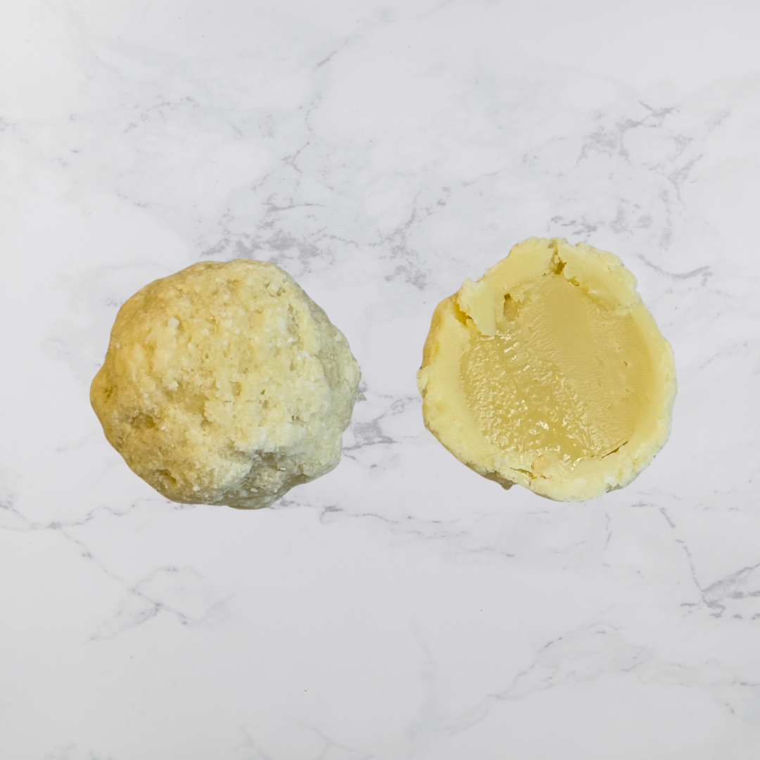 Låt smaken ta dig till varmare breddgrader med vår handgjorda pralin med vit tryffel, ananas och kokos – en ljuvlig kombination som för tankarna till soldränkta stränder och tropisk värme. Den lena vita chokladtryffeln smaksätts med frisk ananas, vilket ger en naturlig sötma och syrlighet i perfekt balans. Tryffeln rullas varsamt i kokosflingor för en rund och mjuk textur som smälter på tungan. Resultatet är en pralin som både överraskar och förför – en smak av semester, fångad i choklad.