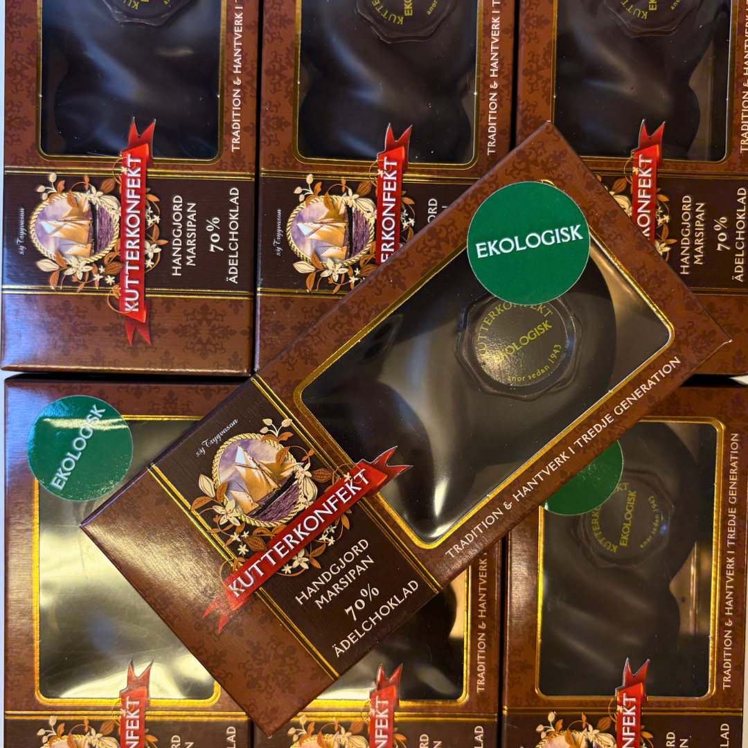 Marsipanen är doppad i 70 % mörk choklad av ädel kvalitet, vilket ger en perfekt smakupplevelse.